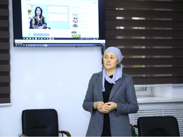 Филология институтытында ғылым айының бағдарламасына сәйкес жоба жетекшісі филология ғылымдарының кандидаты Лира Ибраймова 3 жыл бойғы (2021-2023) жұмыстары туралы презентация жасады. "Қазақ тілін ұлттық брендтер негізінде сандық ресурстар арқылы меңгерту" жобасы аясында жасалған таудай еңбектің оңай болмағандығын бейнероликтермен көрсетіп берді.