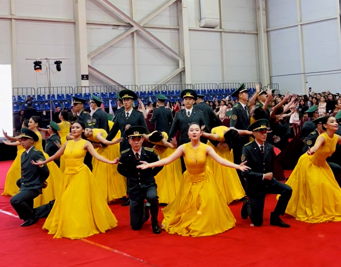Одним из самых ярких моментов вечера стал танец вальса, в котором студентки приняли участие вместе с курсантами Пограничной академии КНБ РК. Это событие подчеркнуло не только официальный статус мероприятия, но и создало атмосферу радости и дружбы.