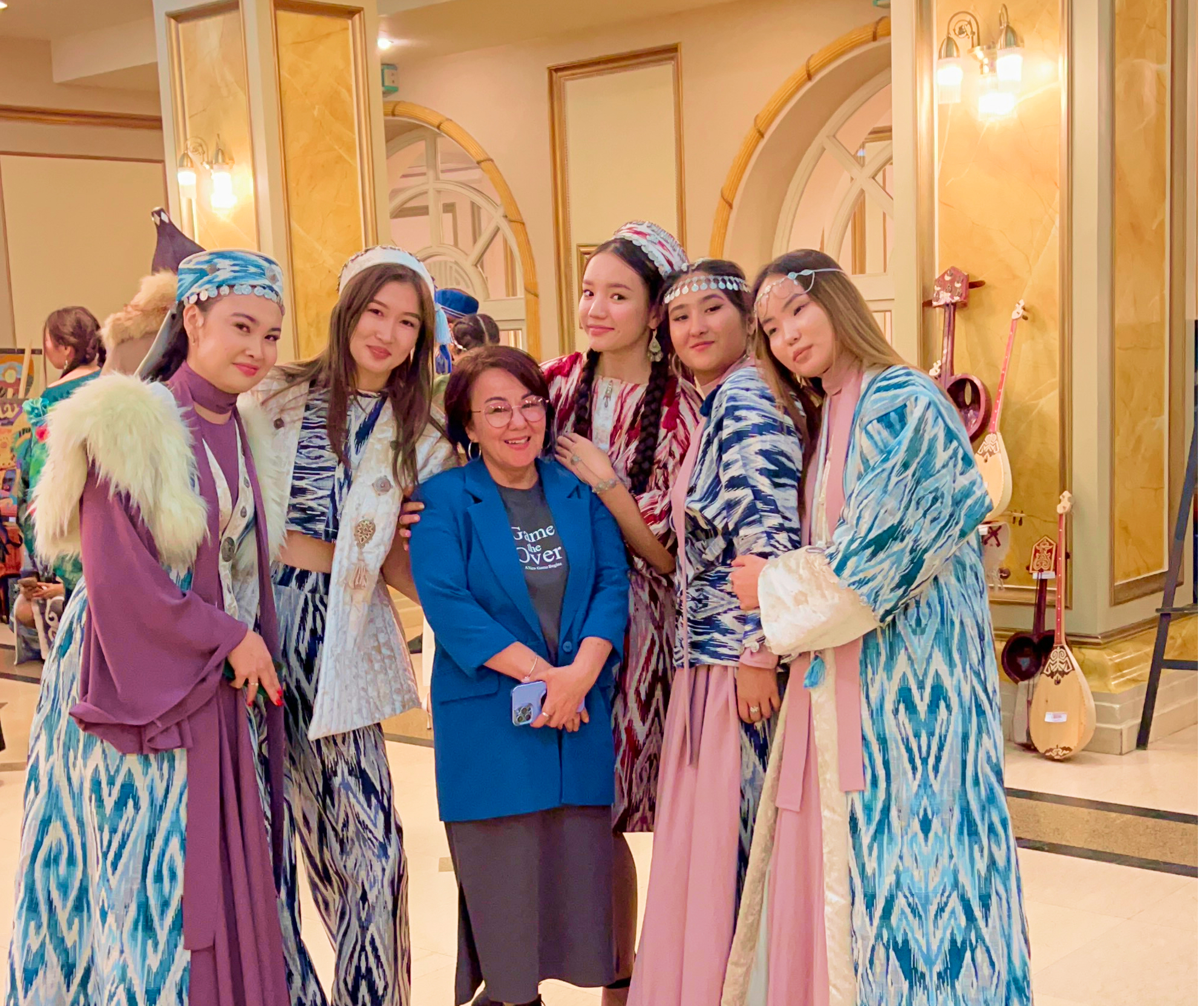 A total of 5 fashion looks were presented. These were not only unique outfits, but also head accessories. It is worth noting that Ulzhan Begeshova, senior lecturer of the Kazakh National Women's Teacher Training University, in her collection used exclusively ikat fabric with "vibrating patterns", imitating the shape of an amulet. By the way, the amulet is the symbol of the Women's Teacher Training University.