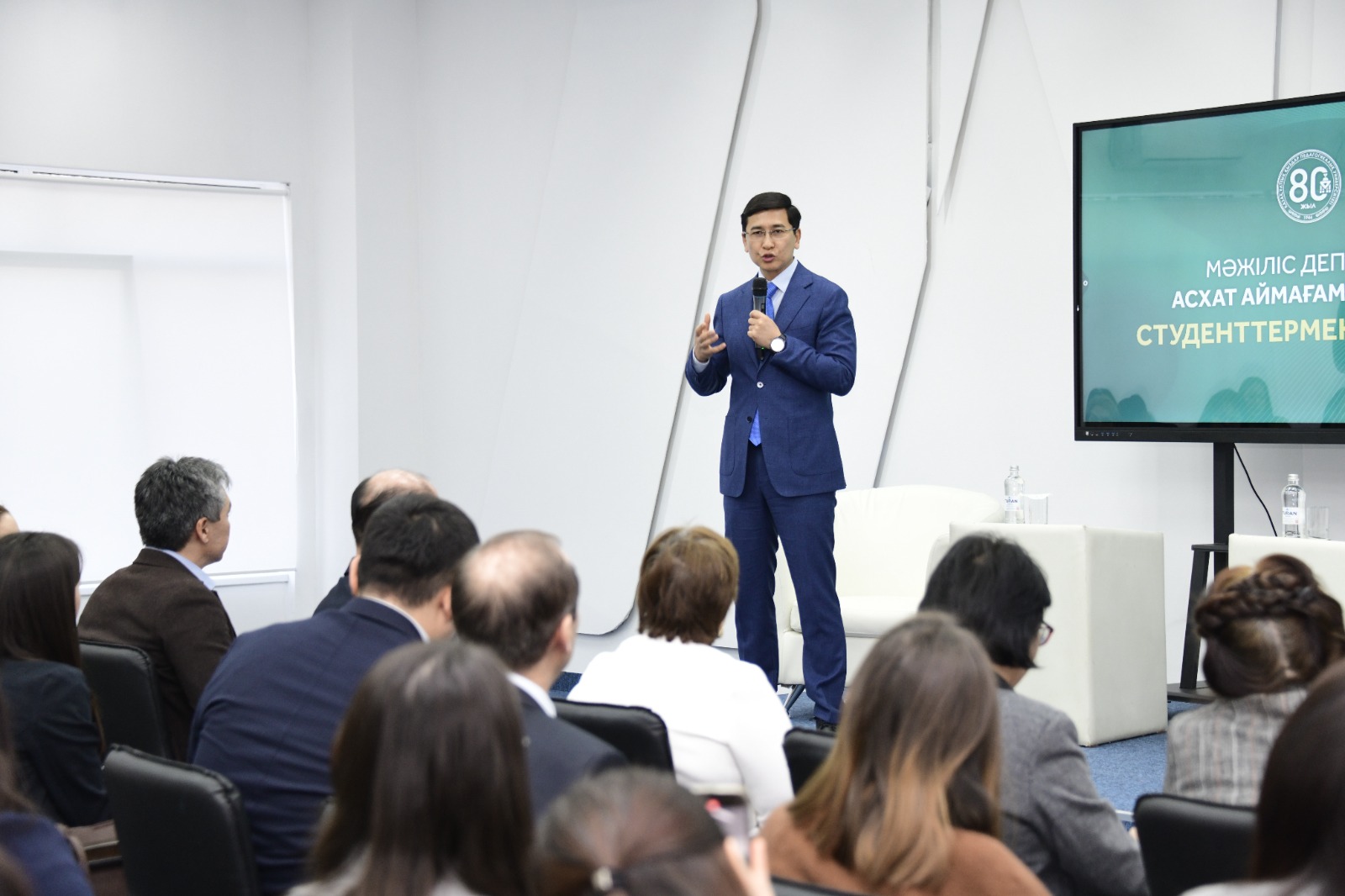 29 ноября в Казахском национальном женском педагогическом университете прошла встреча с депутатом Мажилиса Парламента Республики Казахстан Асхатом Аймагамбетовым.
