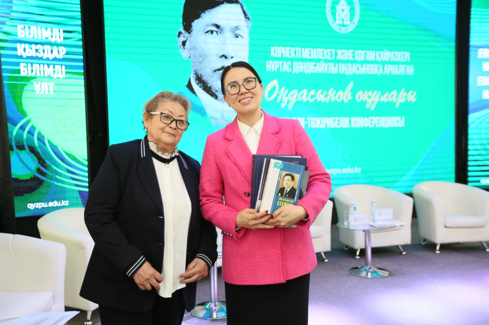 Сегодня в Казахском национальном женском педагогическом университете состоялась научно-практическая конференция под названием «Оңдасынов оқулары», посвящённая памяти выдающегося государственного и общественного деятеля, просветителя, учёного Нуртаса Дандибаевича Ондасынова. В рамках мероприятия в стенах университета торжественно открыт лекционный зал, названный в его честь. Красную ленту на открытии нового лекционного зала перерезали Заслуженный деятель Республики Казахстан, выпускница QyzPU Асылы Осман, член Союза писателей и Союза журналистов РК, нуртастовед Гульсим Оразалыкызы и член Национальной академии наук Республики Казахстан, доктор химических наук, профессор Абдуали Баешович.